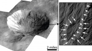 Protoplanet Vesta, visited by NASA’s Dawn spacecraft from 2011 to 2013, was once thought to be completely dry, incapable of retaining water because of the low temperatures and pressures at its surface. However, a new study shows evidence that Vesta may have had short-lived flows of water-mobilized material on its surface, based on data from Dawn.