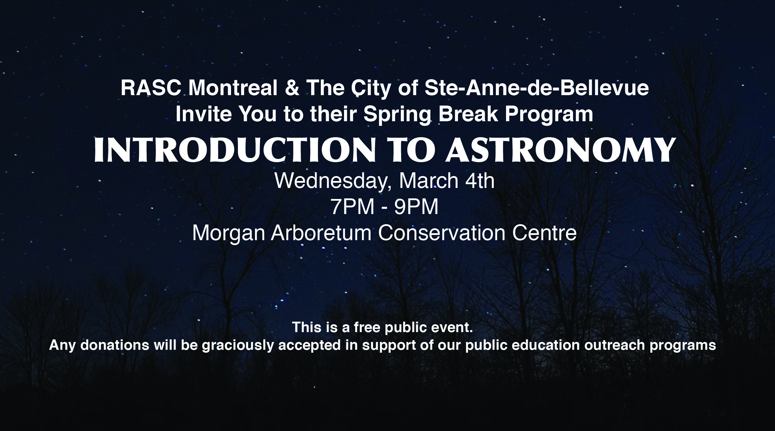 Spring Break – Introduction to Astronomy Program at the Morgan Arboritum – March 04 2015 by Frank Tomaras | Feb 15, 2015 | Events